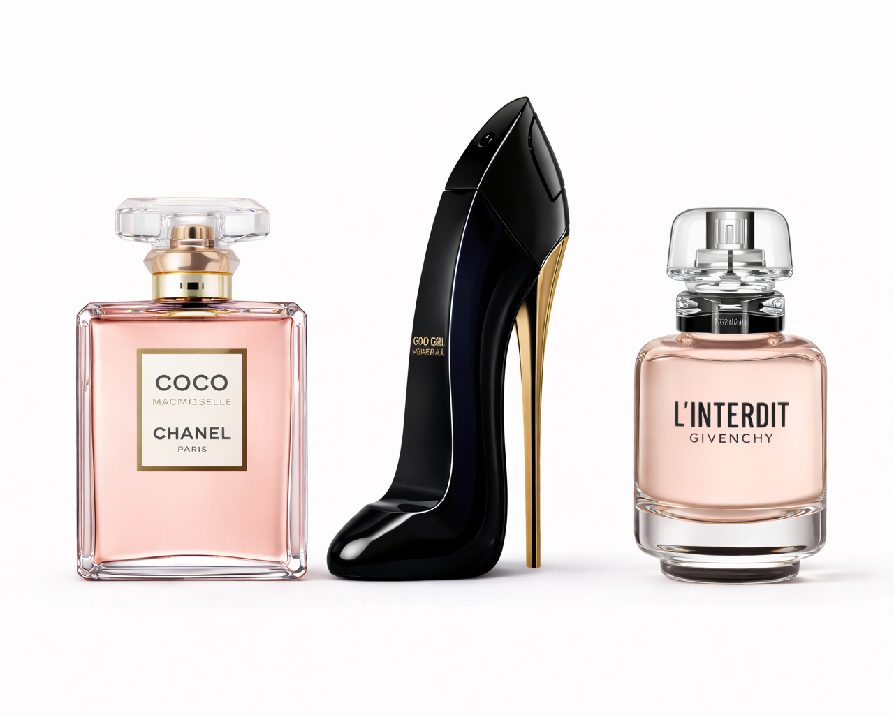 Kit Coco Mademoiselle 100ml + Good Girl 80ml + L’Interdit 80ml – Conjunto com Três Perfumes Femininos