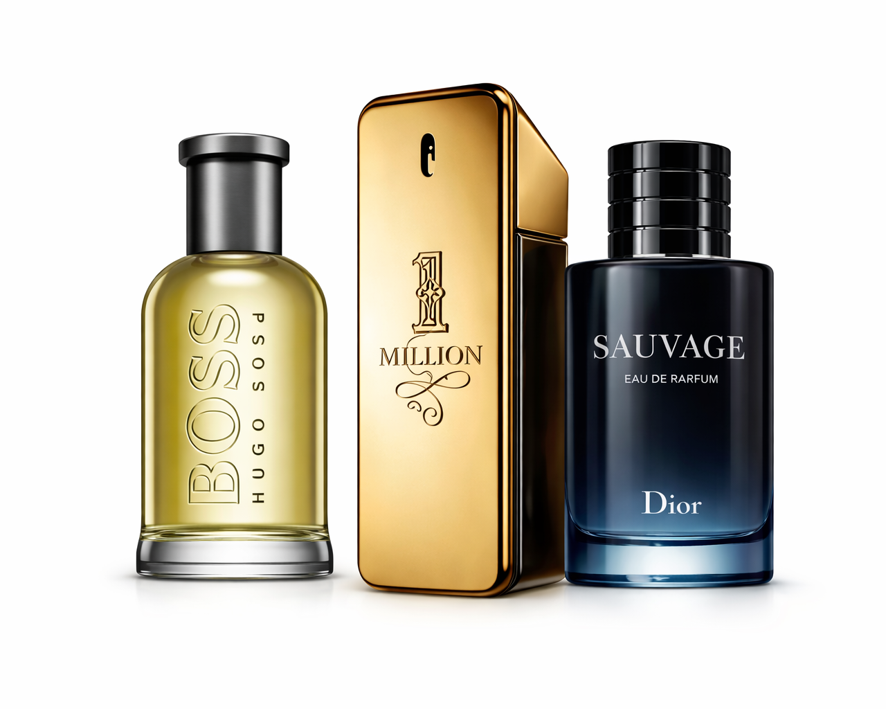 Kit Boss Bottled 100ml + 1 Million 100ml + Sauvage EDP 100ml – Conjunto com Três Perfumes Masculinos