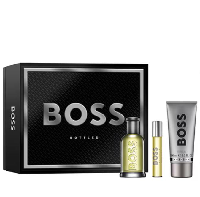 Light up the festive seasons with this B Bottled Eau de Toilette Giftset. This captivating selection is exquisitely packaged in a black presentation box, completed with luminous silver details to ignite sparks of joy. Radiate confidence with B Bottled Eau de Toilette for men. This fresh and masculine fragrance – designed to carry the modern man through whatever the day brings – is instantly recognisable with its fruity, woody aroma. Crafted by master perfumer Annick Ménardo in 1998, the original B Bottled quickly gained icon status as the first male gourmand scent. Just as legendary today, this B perfume for men stands out with a fresh Apple top note and a spicy Cinnamon heart. Its rich base exudes strength with a deep Wood note. Be Your Own B with B Bottled Eau de Toilette. B Bottled Shower Gel cleanses and refreshes while the B Bottled Eau de Toilette Travel Spray allows you to keep this distinctive fragrance for men at hand for a sophisticated scent that lasts all day long.